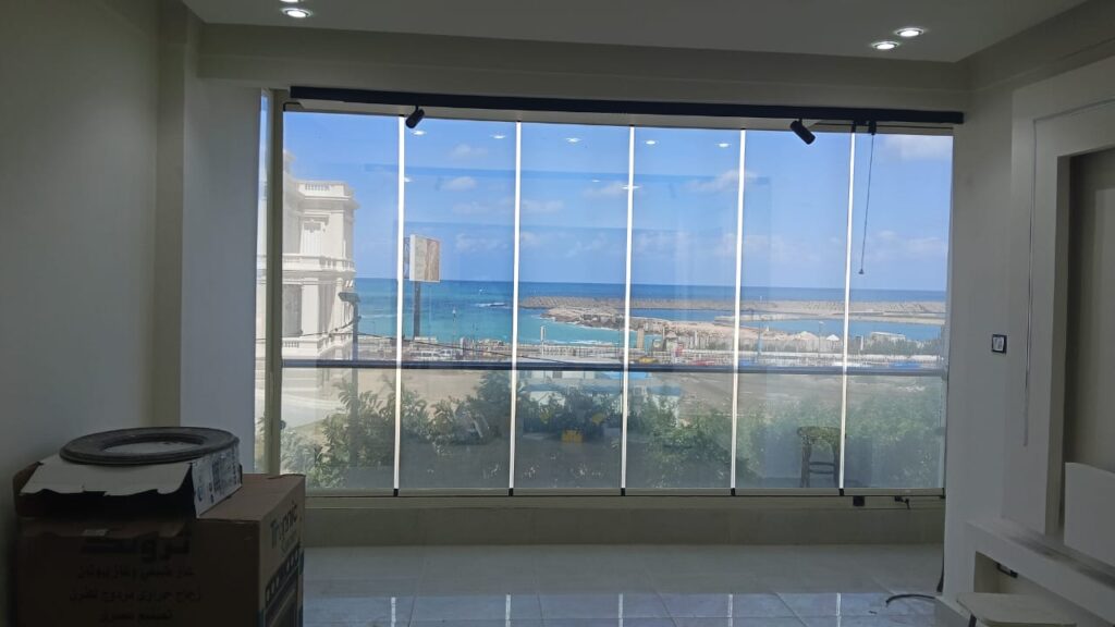 Folding is a glass system or foldable glass curtains that allow the glass panels to be folded onto one another easily and neatly. This system saves a lot of space when the curtains are opened and provides high flexibility in controlling the opening and closing of glass areas, making it suitable for places that need to elegantly and modernly blend indoor and outdoor spaces.